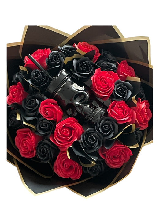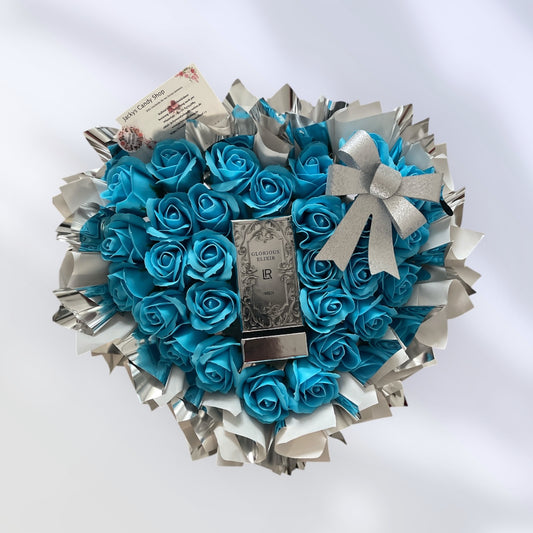 Purer Luxus in einem Flacon umgeben von duftenden Seifenrosen