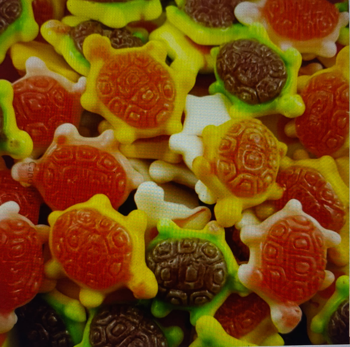 - Gefüllte Bonbons in Form von lustigen Schildkröten.
