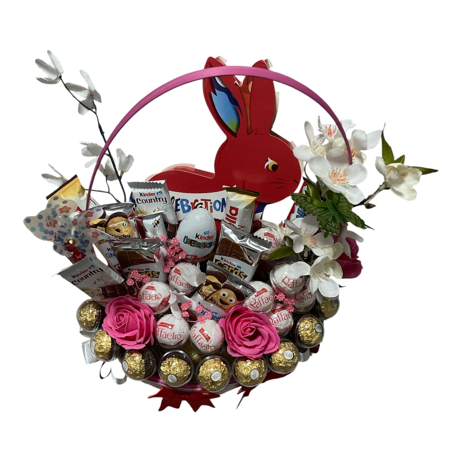 Überraschen Sie Ihre Liebsten zu Ostern mit unserem exklusiven, handgefertigten Deluxe Oster-Geschenkkorb "Kirschblüte". Dieser charmante Bambuskorb, verziert mit zarten Kirschblütenzweigen und kleinen Schleifen, ist prall gefüllt mit einer unwiderstehlichen Auswahl an Schokoladenspezialitäten und eleganten Seifenrosen. Er ist das ideale Präsent, um Freude zu schenken und die Osterzeit zu versüßen.