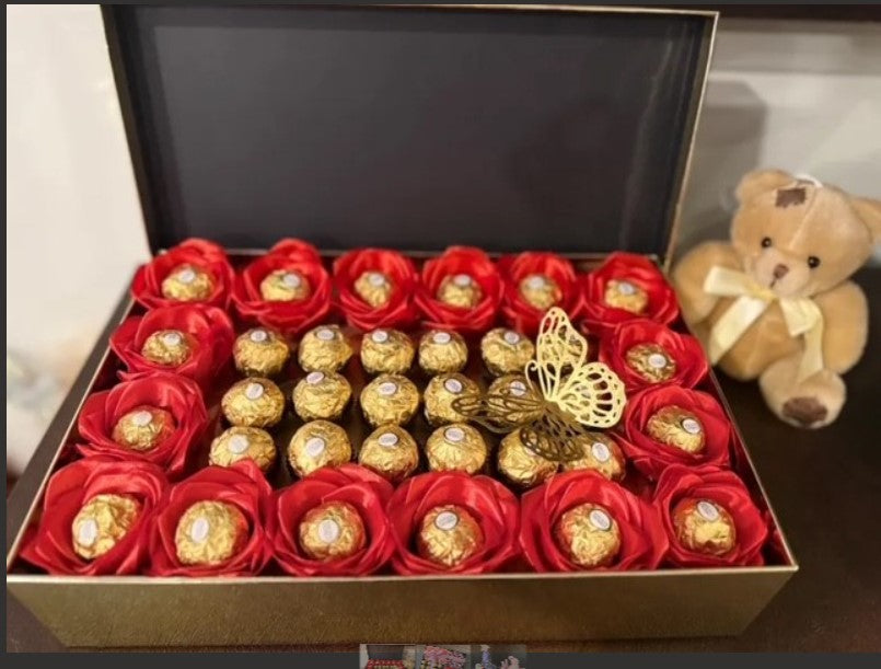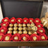 Geschenkverpackung mit 30 einzeln verpackten Pralinen mit Überzug aus Milchschokolade mit Nougat-Creme, Waffel und ganzer Haselnuss